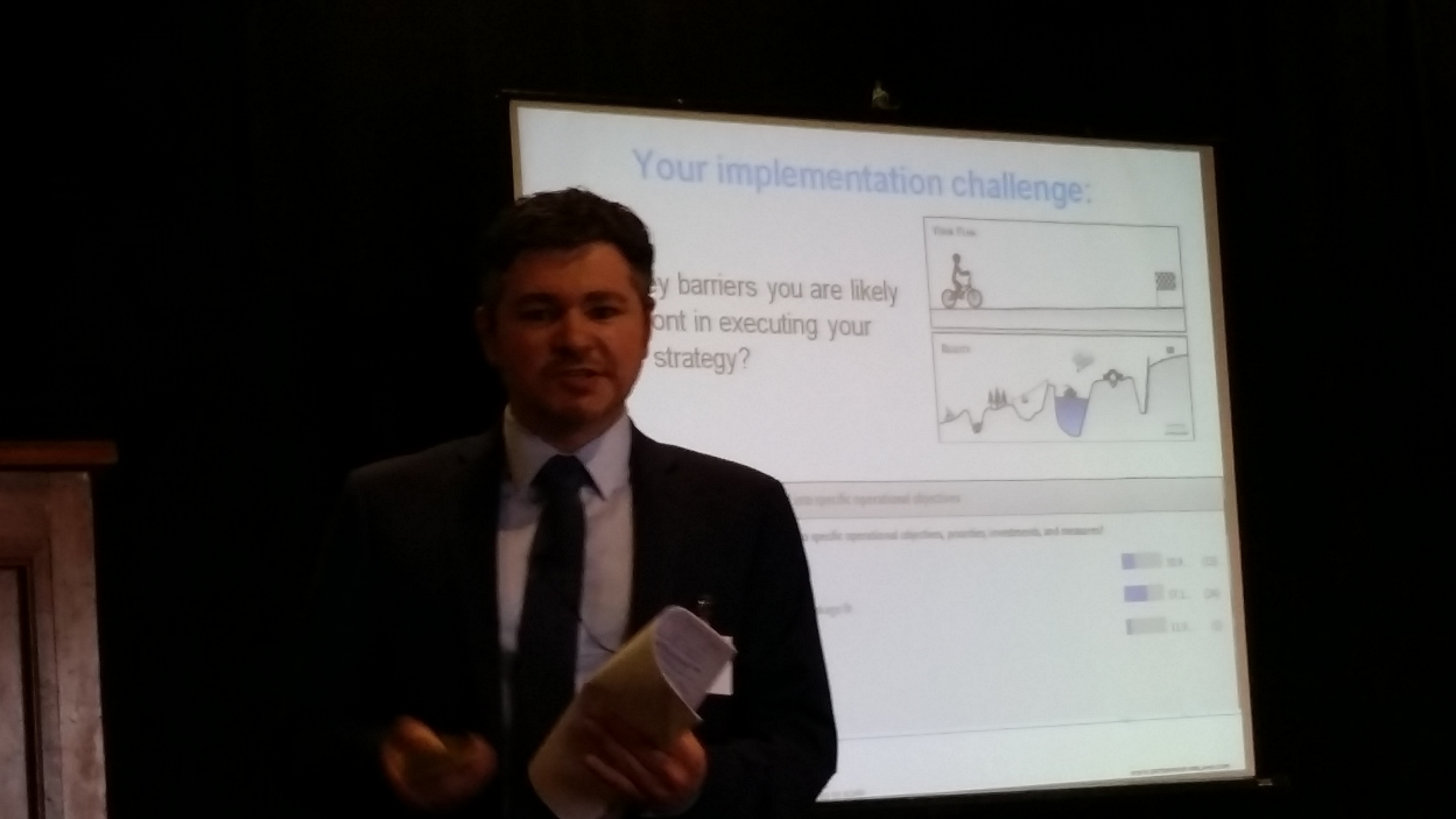 delivering a final talk on strategy implementation.